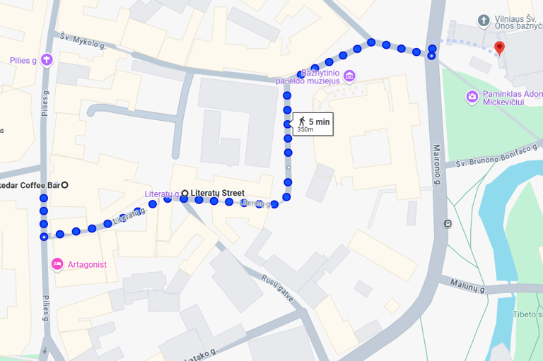 Kavinę lengvai pasieksime pėsčiomis eidami Literatų gatve